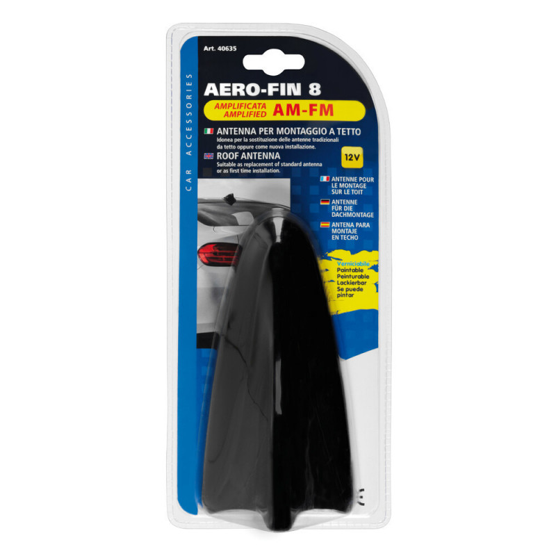Autoanténa strešná AERO FIN 8 AM/FM Vhodná ako náhrada štandardnej antény. Univerzálna a pretierateľná Montáž Ø 15 mm Frekvencia (AM) 530-1650 KHz, (FM) 87-108 MHz Zosilovač (AM) ...