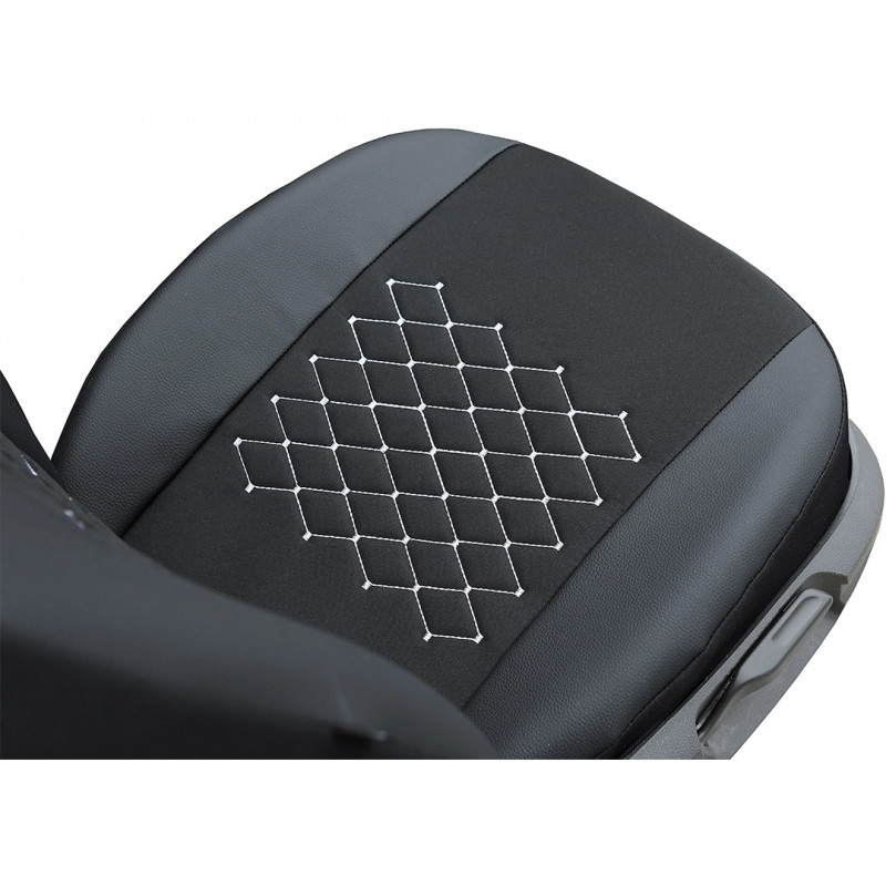 Tieto poťahy sú vyrobené z hrubej čalúnnickej tkaniny v kombinácii s ekologickou kožou so štruktúrou prírodnej kože. Biele prešívanie dodáva interiéru vozidla jedinečný šarm a zvyšuje estetickú hodnotu. Poťahy majú zvýšenú odolnosť voči oderu a opotrebovaniu.