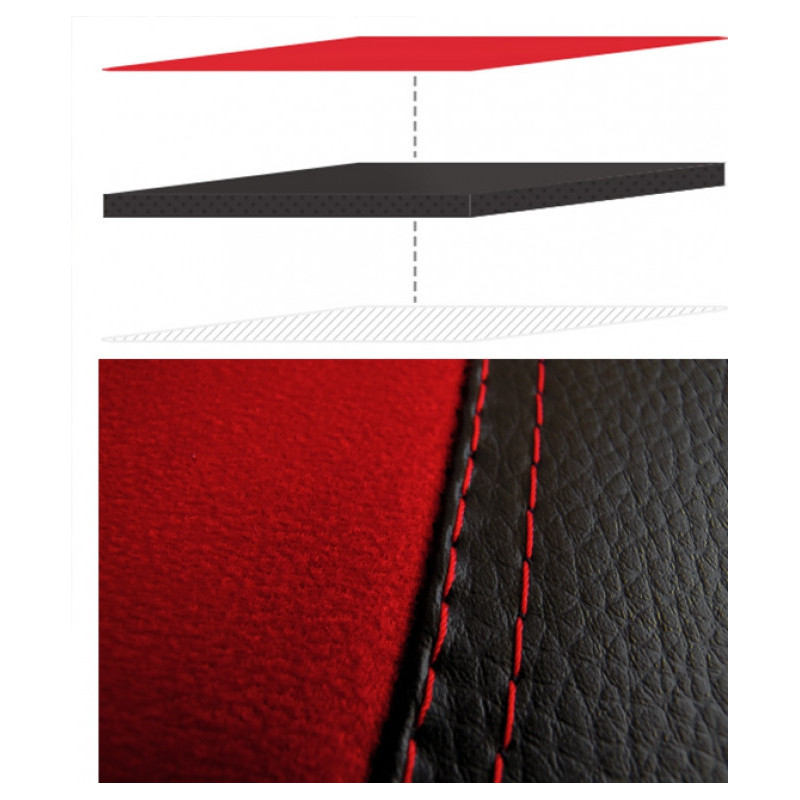 Alcantara - syntetický druh semišu. Je príjemný na dotyk a nestráca svoju farbu.