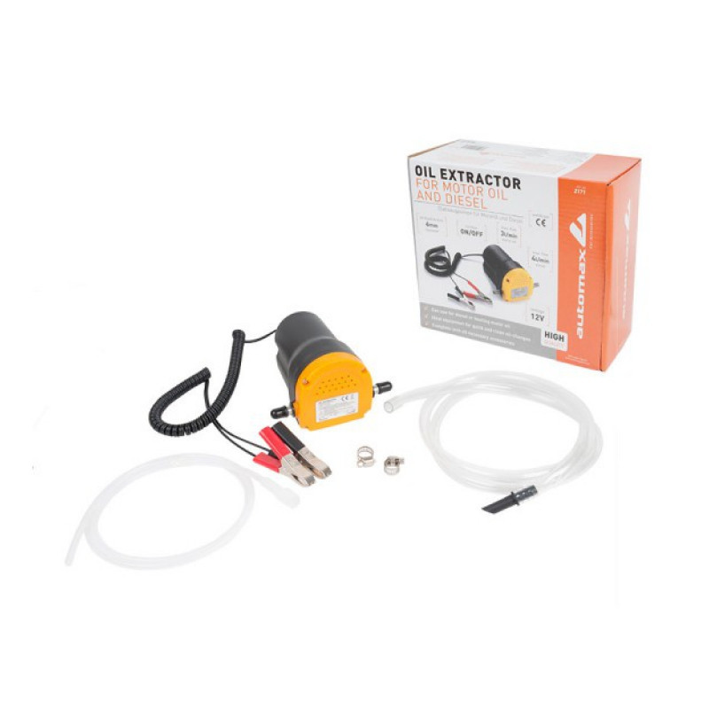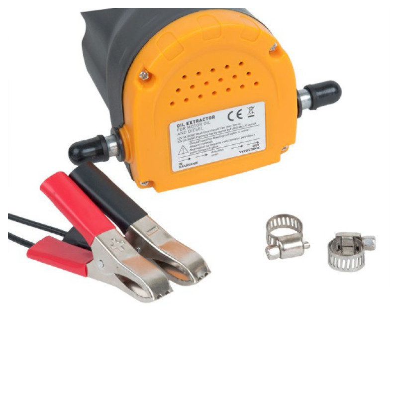 Vďaka efektívnemu 12V čerpadlu sa výmena oleja, nafty alebo ľahkých vykurovacích olejov stane oveľa rýchlejšia a čistejšia. Výmena motorového oleja, motorovej nafty a vykurovacieho oleja, je oveľa jednoduchšia. Do mierky oleja je vložená sonda až do najnižšieho bodu olejovej vane. Pomocou svoriek je možné napojiť akumulátor batérie vozidla. On- a off- vypínač je umiestnený priamo na čerpadle a zaisťuje ľahkú a pohodlnú prevádzku čerpadla.