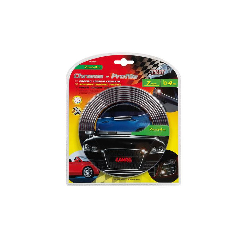 Chrómová plochá lišta na nalepenie. Gumová ozdobná lišta s pochrómovanou povrchovou úpravou. Jednoducho sa skracuje na požadovanú dĺžku. Uvedená cena je za 4 metre.