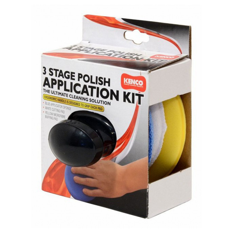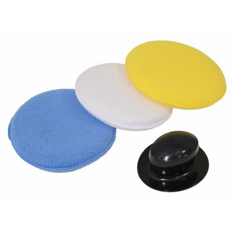 Sada troch kotúčov s priemerom 12 cm pre dokonalé ručné vyleštenie karosérie vozidla. Ergonomická rukoväť je vyrobená tak, aby sa dala použiť na každý kotúč.