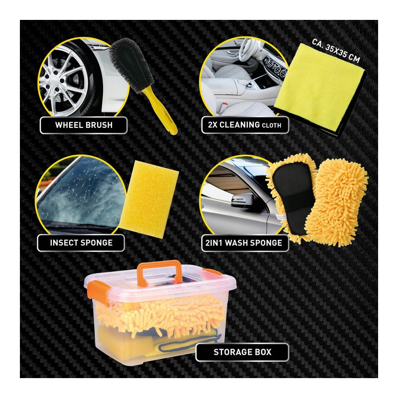 Sada je navrhnutá tak, aby ste mohli čistiť rôzne povrchy vozidla, vrátane karosérie, okien a kolies.