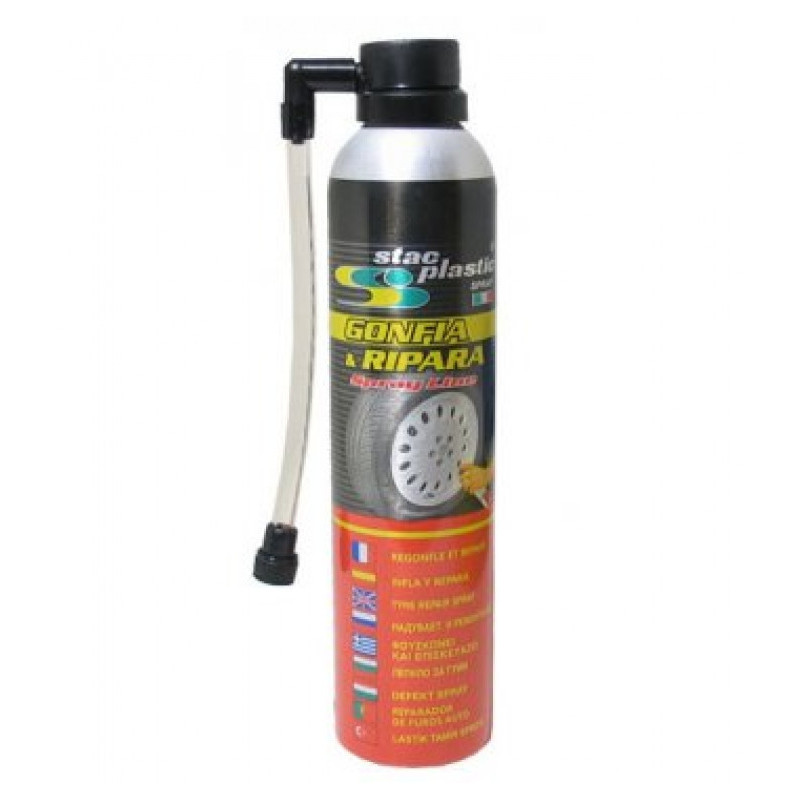 Defekt sprej - lepiaca sada určená na opravu prepichnutého kolesa (pneumatiky) osobných automobilov.