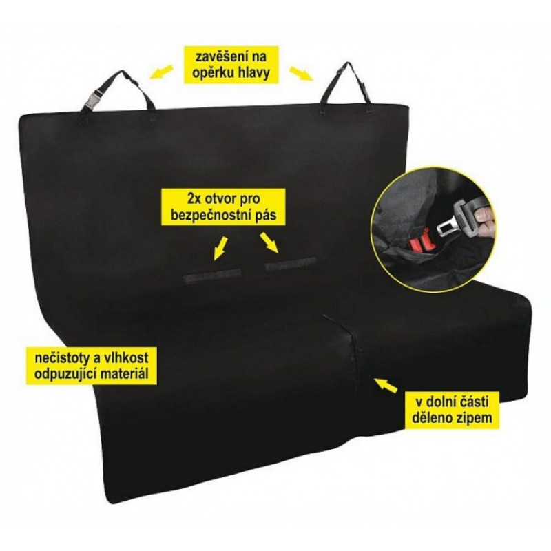 Ochranná deka zo zosilneného materiálu, zabraňuje znečisteniu vozidla pri preprave psov. Deka je určená na upevnenie na zadné sedadlo jednoduchým zavesením za opierky hlavy. Dva uzatvárateľné otvory na bezpečnostné pásy, dolná časť delená zipsom pre ľahké prispôsobenie deky rôznym vozov. Deka je umývateľná, použitý materiál odpudzuje nečistoty i vlhkosť.