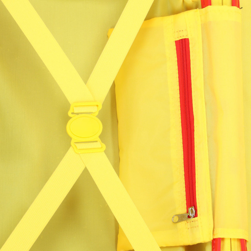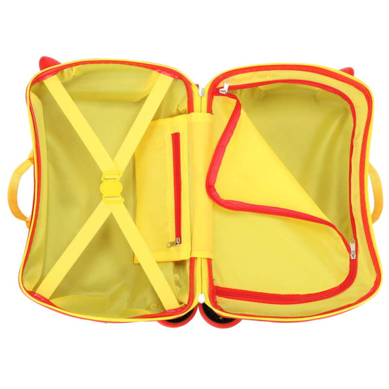 Zaujímavým prvkom kufra sú podpery na nohy, ktoré umožňujú dieťaťu si na kufor sadnúť a oddýchnuť si počas náročného cestovania. Kufor sa uzatvára pomocou praktického zipsu.