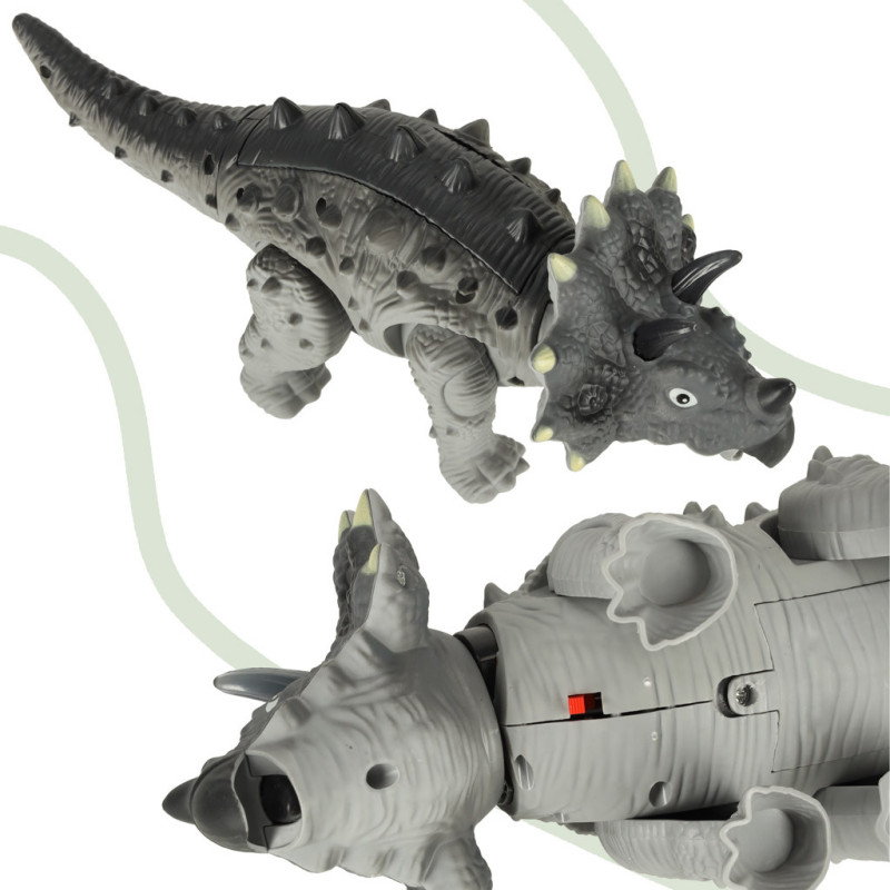 Interaktívny dinosaurus Triceratops je perfektnou hračkou pre deti fascinované svetom prehistorických zvierat. Tento pohyblivý dinosaurus chodí, svieti a vydáva realistické zvuky, čo z neho robí výnimočný darček pre každého malého paleontológa.