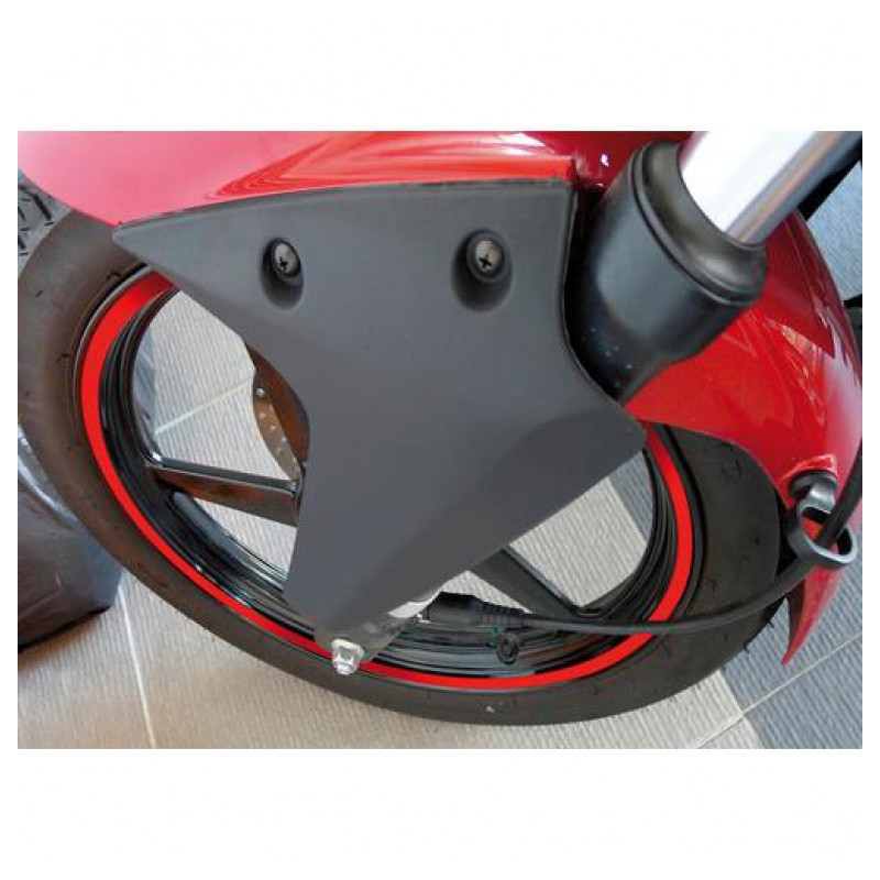Miesto aplikácie dôkladne očistite a odmastite, prípadne aj alkoholom. Nedotýkajte sa lepidla prstami. postupne tlakom prikladajte jednotlivé časti na koleso. Neumývajte v priebehu 48 hodín. Vyhnite sa umývacím kefám.