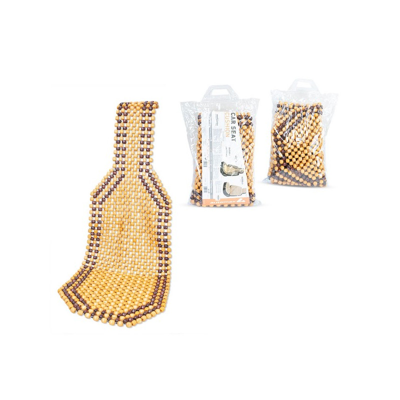 Univerzálna podložka z drevených guľôčok, ktoré príjemne masírujú telo a dodávajú pocit pohodlia. Umožňuje prúdenie vzduchu medzi pasažierom a sedadlom vozidla. Ľahko sa udržiava v čistote. Návod na použitie: Podložku rozložte na sedadlo a operadlovú časť a pomocou všitého popruhu pripevnite k hornej časti operadla.