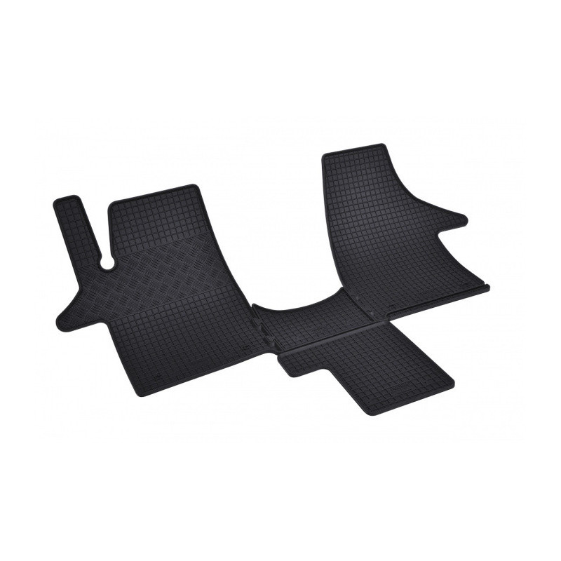 Gumené rohože na mieru pre VOLKSWAGEN T5 2m Transporter / Caravella / Multivan +TUNEL (4diel) (2003->). Rohože sú vyrobené presne na mieru interiéru daného vozidla. Lacnejšia náhrada originálnych rohoží.