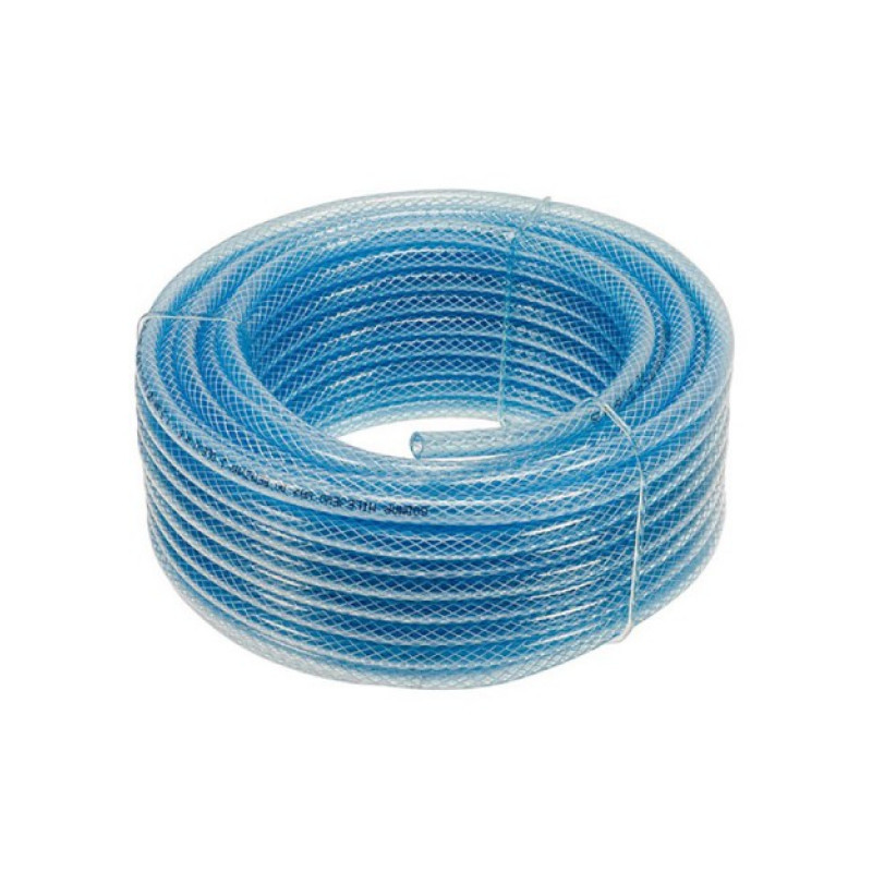 Trojvrstvová benzínová a olejová hadica z PVC zosilnená - priehľadná modrá. Zrolovaná - dĺžka 25 metrov. Certifikát ZETOM. Vyrobené z materiálu, ktorý je odolný voči benzínu, oleju, ľahkým chemikáliam a poveternostným podmienkam. Výstuž hadice vyrobená z odolných polyesterových nití. Hrúbka steny 2,00 mm Vnútorný priemer 10 mm Pracovný tlak 6 bar / Deštrukčný tlak 16 bar Tvrdosť: približne 83 Sha Pracovná teplota: -25 až + 60 ° C Vaha 2,10 Kg/25m