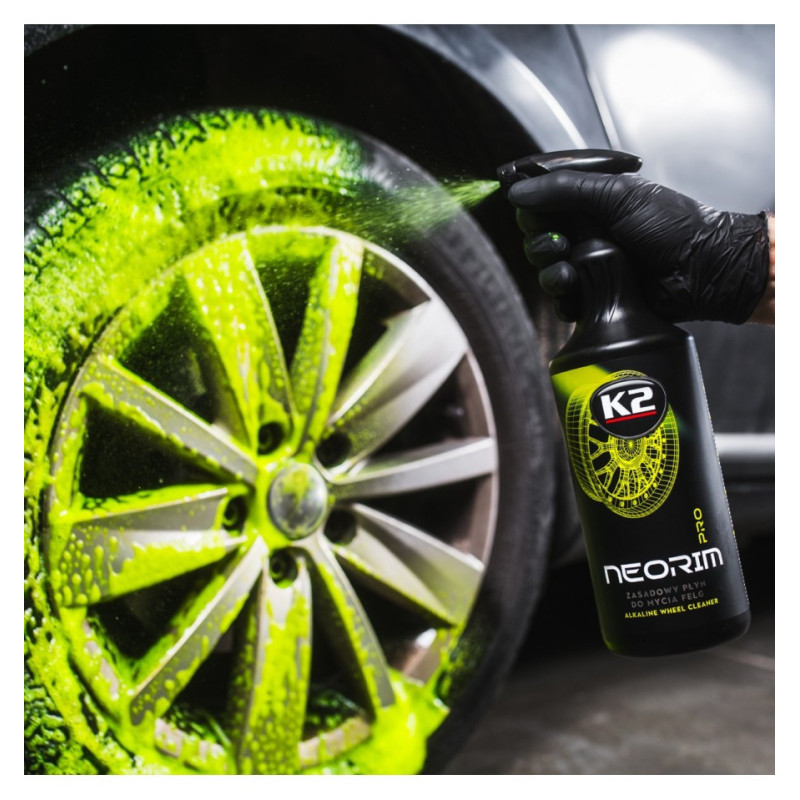 K2 NEORIM PRO - zelená sila pre dokonalé čistenie diskov K2 NEORIM PRO je profesionálny čistič diskov, ktorý nemilosrdne bojuje so špinou a brzdovým prachom. Jeho inovatívne zloženie bez obsahu kyselín zaručuje maximálnu účinnosť bez poškodenia povrchu. Obohatený o inhibítory korózie, spoľahlivo čistí, chráni a stará sa o všetky typy ráfikov, pneumatiky aj podbehy kolies. Jeho výrazná neónovo zelená farba okamžite odhalí nečistoty, zatiaľ čo hustá pena priľne k povrchu a umožní hĺbkové čistenie. K2 NEORIM PRO nielen že účinne čistí, ale aj spríjemňuje prácu sviežou vôňou, ktorá vás sprevádza počas aplikácie. Ideálny pre profesionálov aj nadšencov, ktorí hľadajú spoľahlivé riešenie pre dokonalý vzhľad kolies.