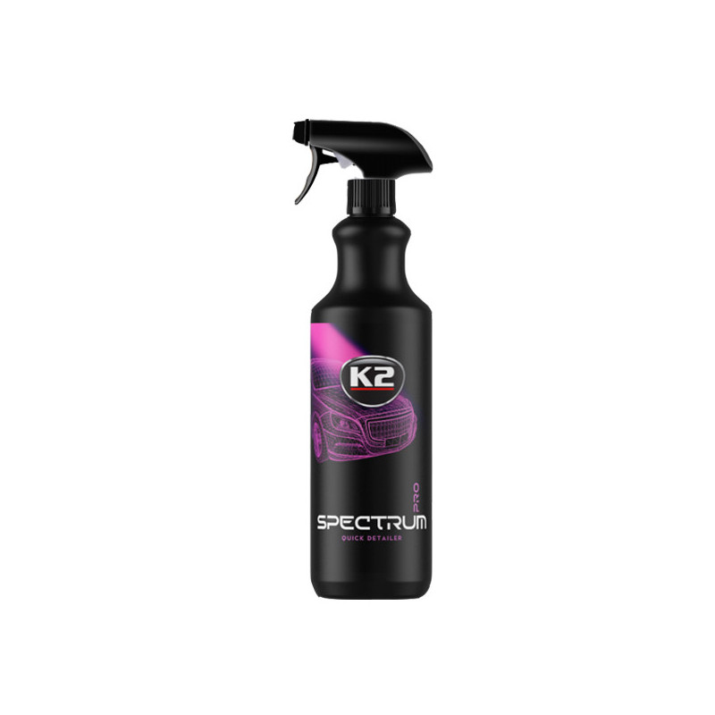 K2 SPECTRUM PRO – rýchly detailer so syntetickým voskom K2 Spectrum Pro je rýchly detailer na báze syntetického vosku, ideálny na osvieženie laku a ďalších povrchov, ako sú plasty, guma a chróm. Zabezpečuje zrkadlový lesk a hĺbku farby, vytvára hydrofóbnu ochrannú vrstvu a zároveň chráni lak pred poveternostnými vplyvmi – bez zanechávania šmúh.