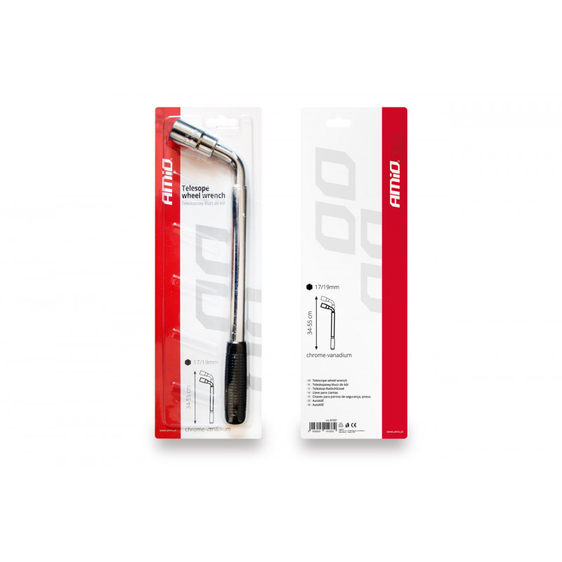 Praktický teleskopický kľúč na kolesá. Kľúč na kolesá je vhodný k ľahkému uťahovaniu a povoľovaniu matíc kolies s rozmermi 17 a 19mm. Skvelý pomocník pre výmenu kolies, ktorý značne uľahčí prácu. Teleskopický kľúč na kolesá s variabilnou dĺžkou 34-55 cm a veľkou protišmykovou rukoväťou. Veľkosť: 17 x 19 mm.