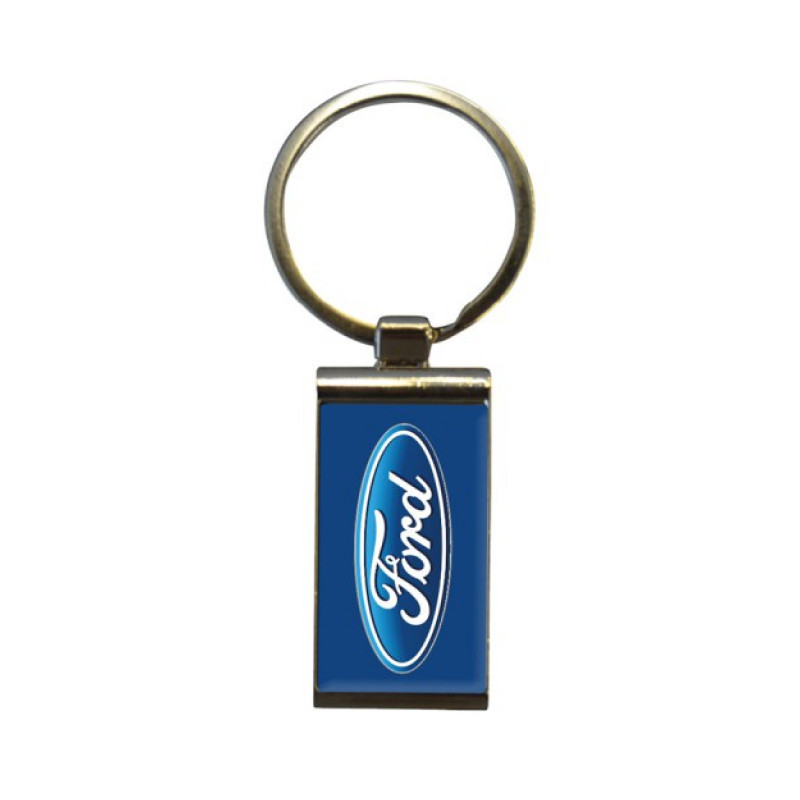 Kovová kľúčenka so živicovou nálepkou s logom auta.