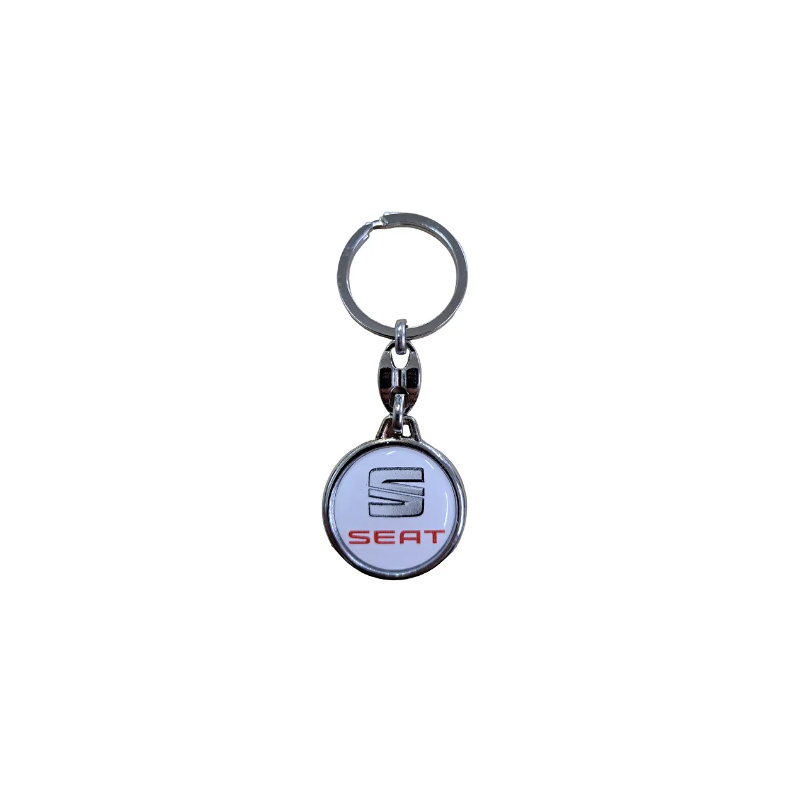 Kovová kľúčenka so živicovou nálepkou s logom auta.