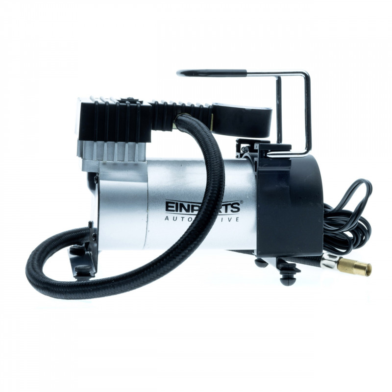 Kovový kompresor EINPARTS AUTOMOTIVE 12V 10 Bar 150 PSI je spoľahlivý nástroj, ktorý umožní rýchle nafukovanie pneumatík automobilov, bicyklov, športových loptičiek a mnohých ďalších predmetov. Poháňaný z auta. Kontrolujte tlak pomocou veľkého manometra a pohodlne ho prenášajte kamkoľvek s praktickou rukoväťou.