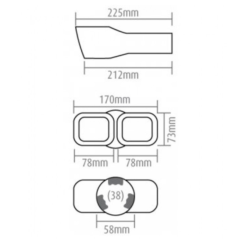 Vhodné na výfuk o priemere: od 38 do 52mm. (priemer koncovky 58mm, úchyty po stranách zaberajú cca 6 mm)
