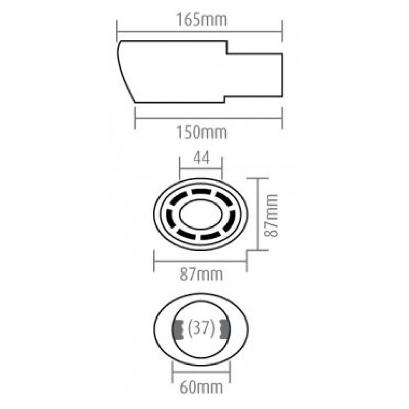 Vhodné na výfuk o priemere: od 37 do 54mm. (priemer koncovky 60mm, úchyty po stranách zaberajú cca 6 mm)