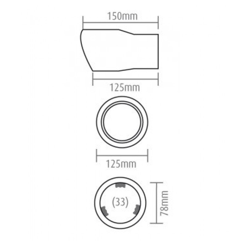 Vhodné na výfuk o priemere: od 33 do 72mm (priemer koncovky 78mm, úchyty po stranách zaberajú cca 6 mm)