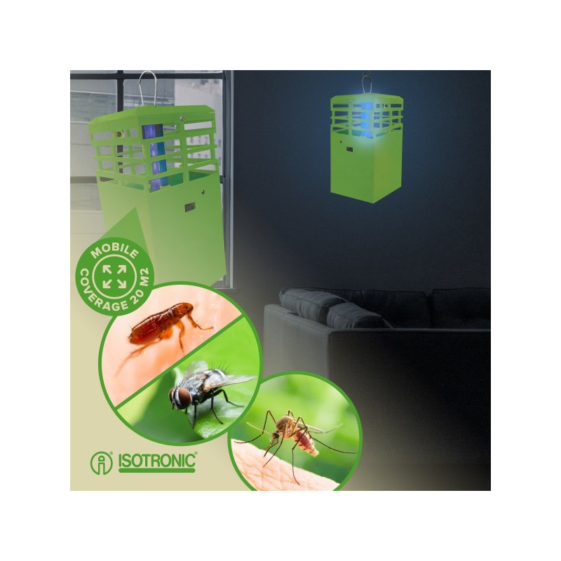 Tento lapač hmyzu pracuje bez chemikálií a nespôsobuje žiadne znečistenie životného prostredia. Nepríjemný hmyz, najmä komáre, ovocné mušky a komáre, priťahuje špeciálne modré a osvedčené svetlo. Na ceste k zdroju svetla sa tieto lepia na lepiacu fóliu integrovanú v prístroji.