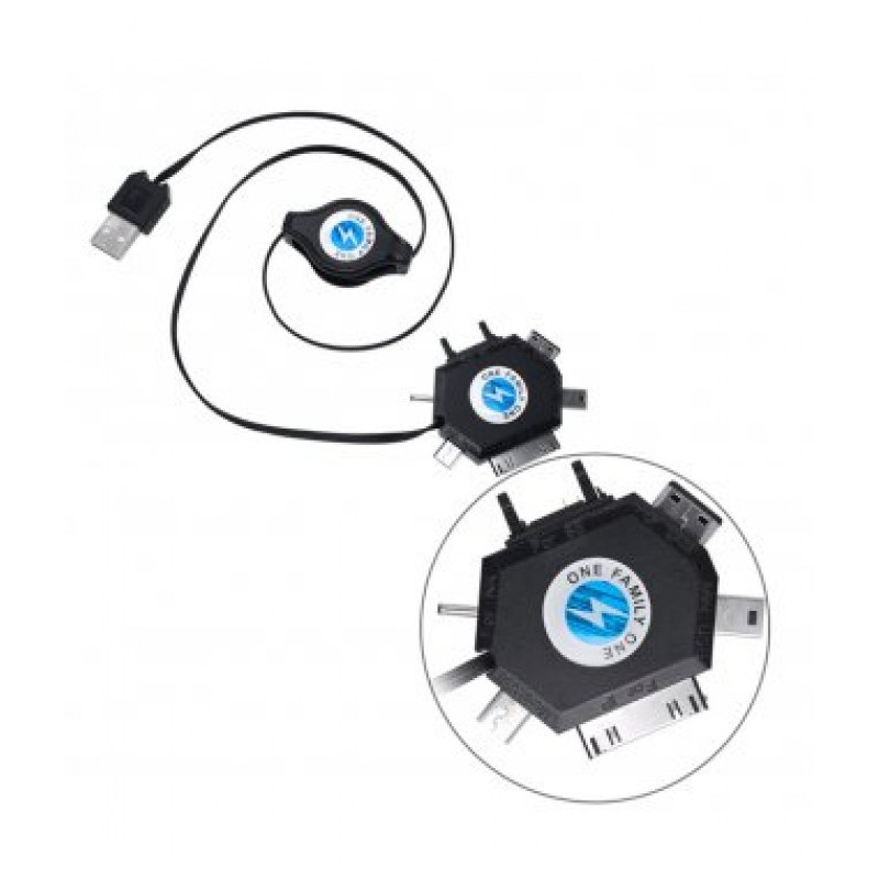 Univerzálny nabíjací kábel 4v1, samonavíjací.