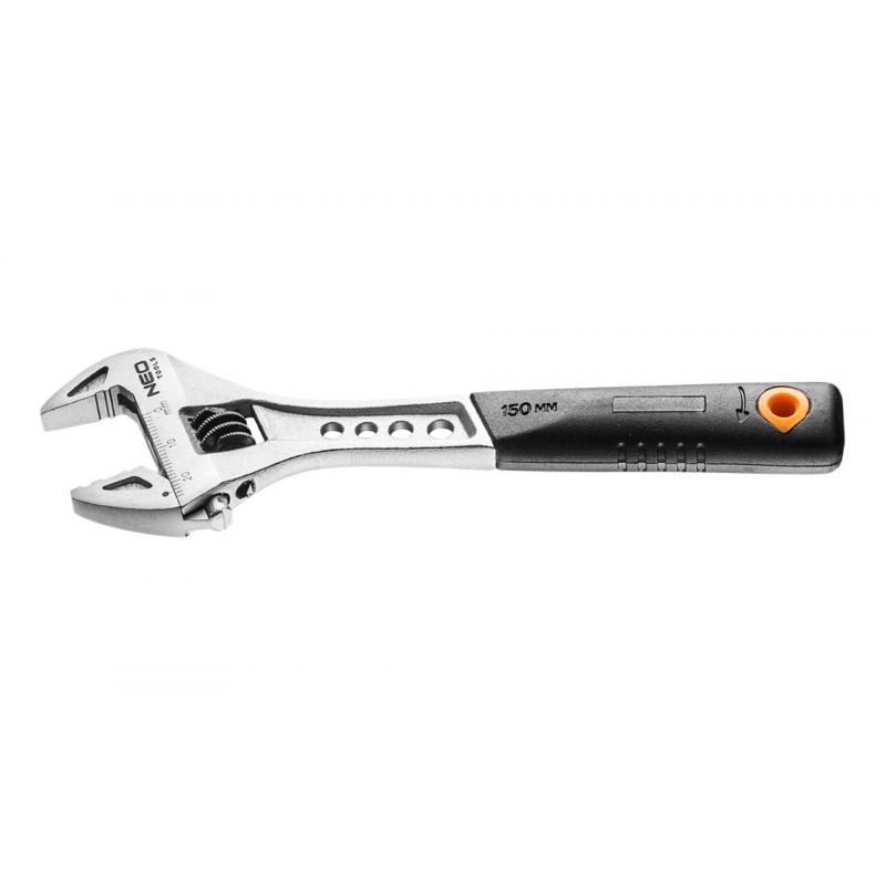 NEO Nastaviteľný kľúč je kovaný z odolnej chróm-vanádiovej ocele. Vyznačuje sa širokým rozsahom nastavenia čeľustí. S ergonomickou rukoväťou potiahnutou plastom odolným voči olejom a tukom. Kvalita nástroja potvrdená certifikátom TÜV a zárukou výrobcu na 25 rokov. Značka NEO spĺňa očakávania profesionálov.
