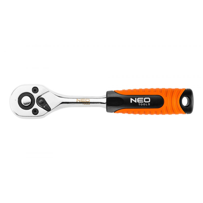NEO 1/2 ' Račňa prepínacia s dĺžkou 265 mm, vyrobená z chróm-vanádiovej ocele v súlade s DIN 3122. Mechanizmus račne so 45 zubami zaručuje precíznu prácu. Je vyrobený z mimoriadne odolnej chróm-molybdénovej ocele, ktorá predlžuje životnosť nástroja. Ergonomická rukoväť z dvoch materiálov zvyšuje pohodlie pri práci. Kvalita náradia je potvrdená certifikátom TÜV a zárukou výrobcu na 25 rokov. Značka NEO spĺňa očakávania profesionálov.