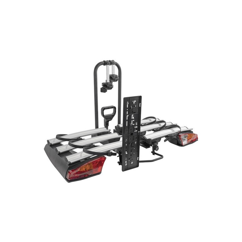 Kompaktný a ľahký Antares je nový sklopný nosič bicyklov s ťažným zariadením s rýchloupínacím systémom vyrobený z robustného oceľového rámu a veľkých hliníkových koľajníc. Ideálne pre elektrobicykle a tučné bicykle. Antares je vybavený pedálom ovládaným systémom naklápania a dvojitým zariadením proti krádeži nosiča bicyklov a bicyklov.