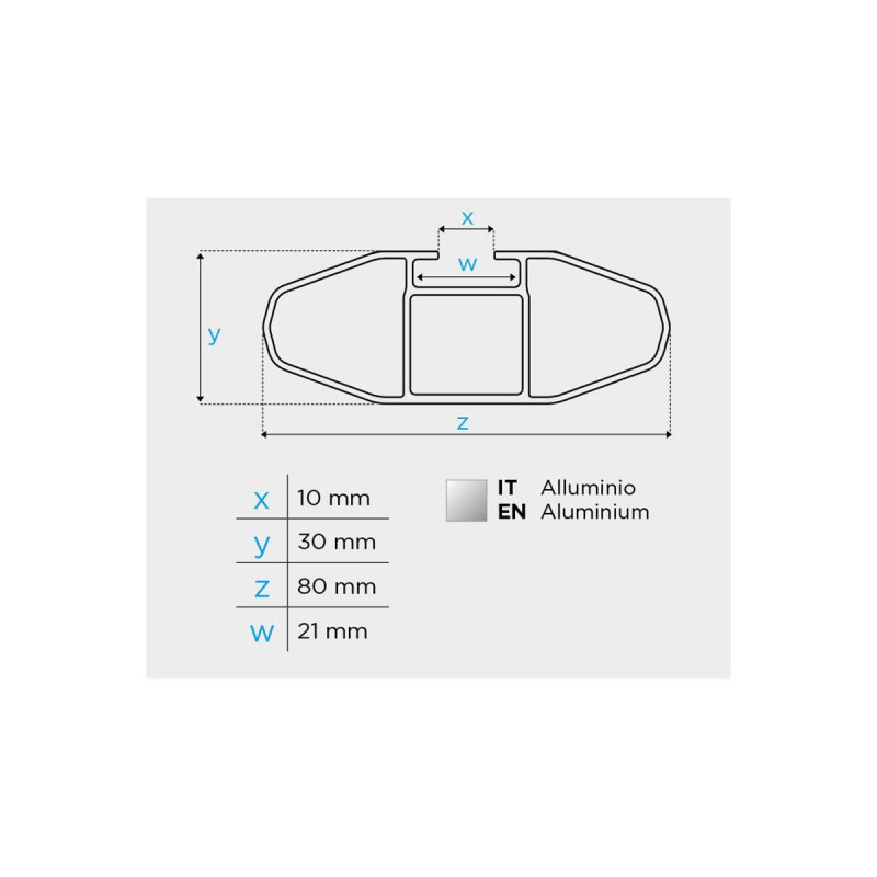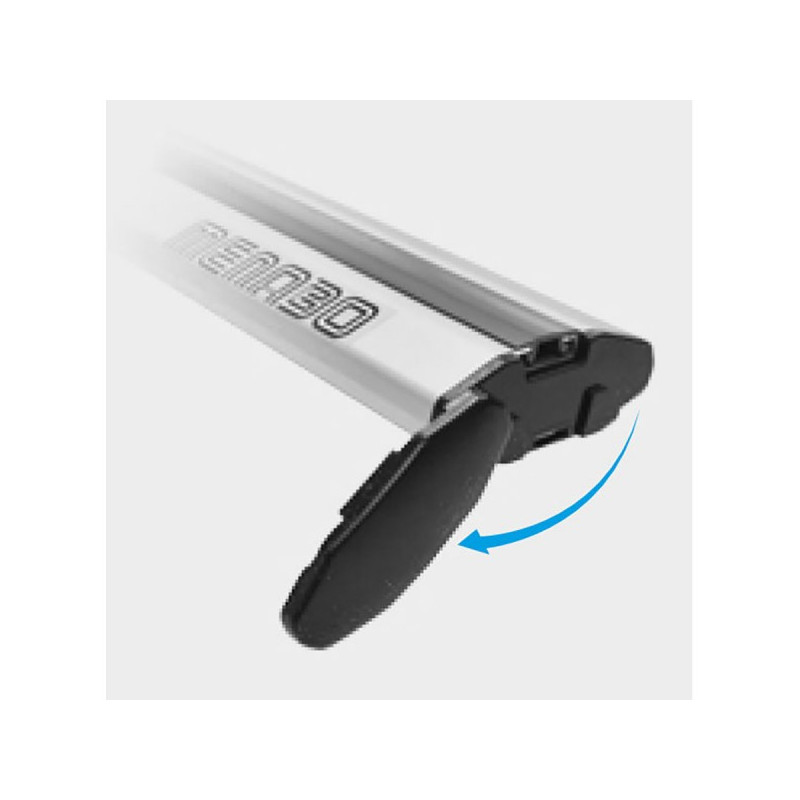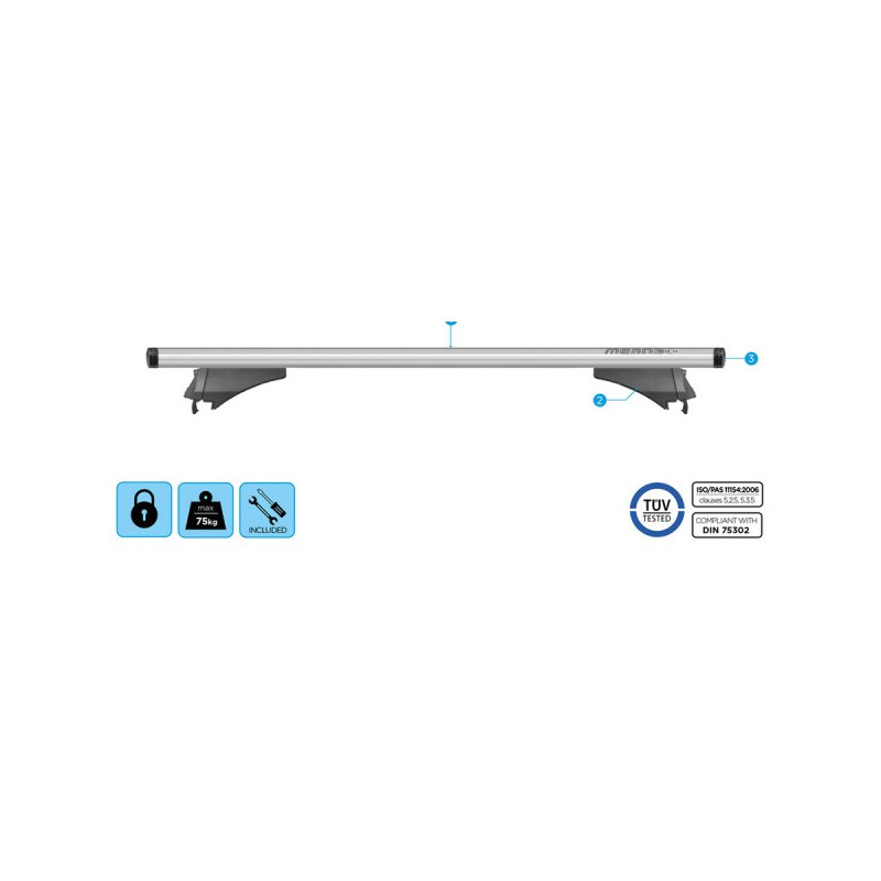 Kompletný strešný nosič MENABO BLADE L 127 cm pre vozidlá s atypickými podĺžnymi lyžinami na streche. Materiál hliník. T-drážka 20mm, ktorá je kompaktibilná s príslušenstvom THULE, max. zaťaženie 75kg, aerodynamický tvar, sada obsahuje 2 ks priečok a sadu pätiek Alfa High. Profil priečky 80 x 30 mm. Nosič je uzamykateľný, zámky sú súčasťou sady. Hmotnosť 5 kg.