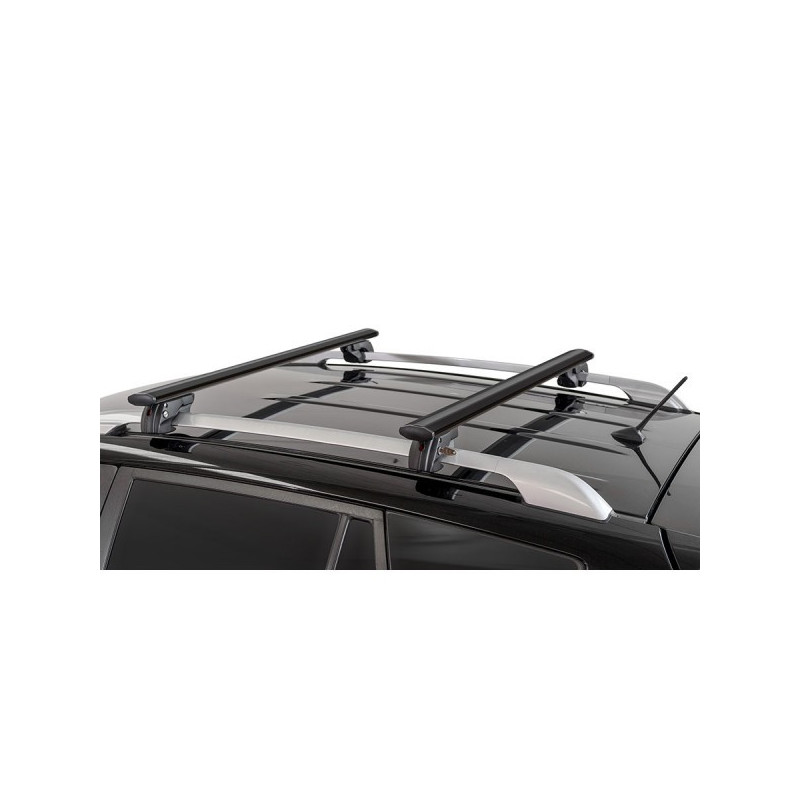 Hliníkové strešné tyče pre autá so štandardným zábradlím, vybavené systémom proti krádeži; rýchla a jednoduchá inštalácia.
