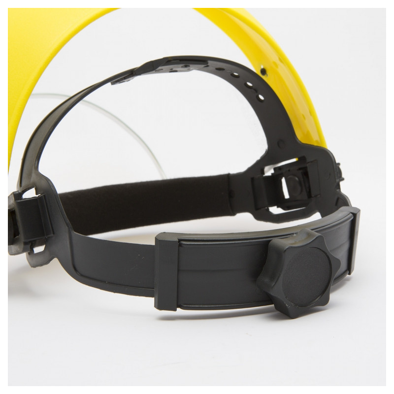 Ochranný kryt, ktorý chráni celú tvár, pohodlný držiak na hlavu, z číreho plexiskla. Pri nosení chráni tvár a oči pred prskajúcimi chemickými látkami, pred odletujúcimi iskrami alebo pred inými nebezpečenstvami, všad e kde je potrebná ochrana celej tváre.