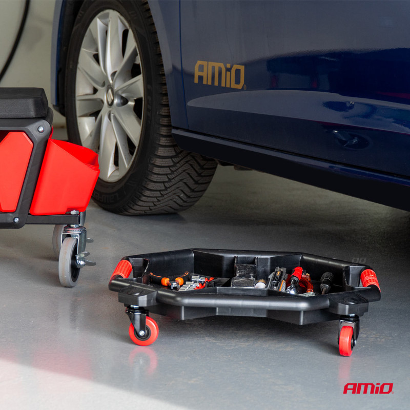 Organizér náradia na kolieskach je praktický a mobilný pomocník pre každého majstra, mechanika či domácich kutilov. Jeho robustná konštrukcia z odolného plastu zabraňuje vypadávaniu náradia a umožňuje efektívne usporiadanie náradia, ako sú kľúče, skrutkovače a ďalšie príslušenstvo. Vďaka odolným kolieskam je ľahko prenosný a ideálny pre prácu pod vozidlom, v autodielni alebo garáži.