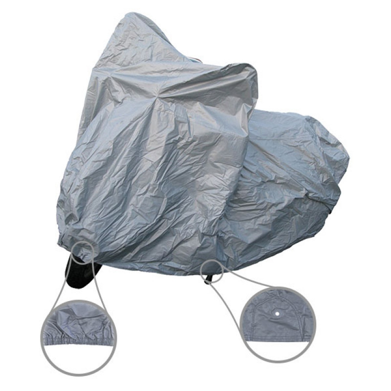 Ochráni Váš motocykel v domácnosti, alebo v práci, počas dažďa, snehu, alebo prudkého slnka. Zabráni vyblednutiu farby Vášho motocyklu vplyvom počasia. Ochráni Váš motocykel pred slnečným žiarením