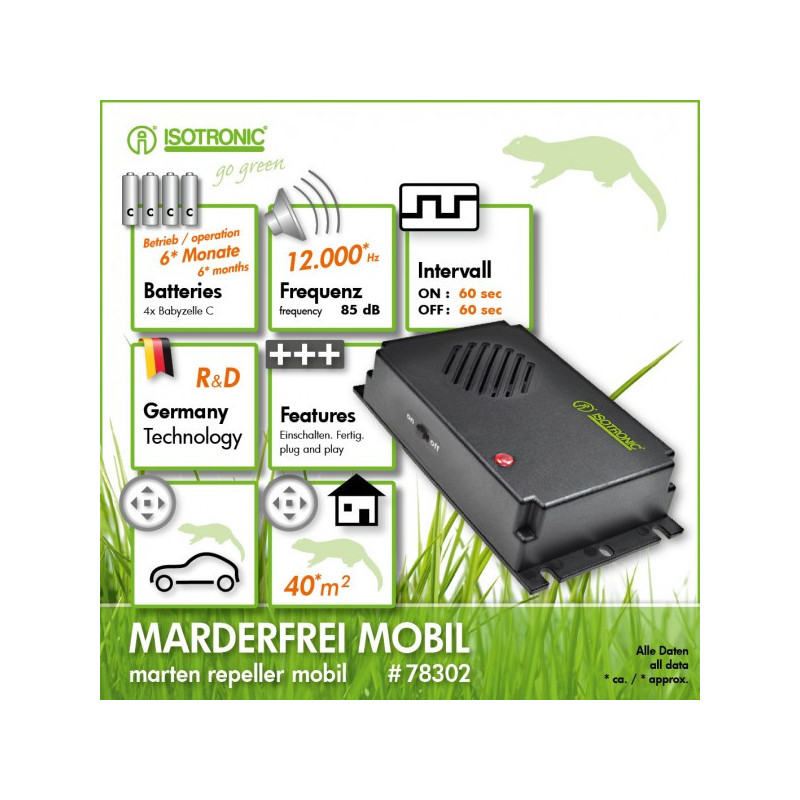 Vysokoúčinný prístroj generuje agresívny ultrazvukový signál vo frekvenciách 12kHz v 60 sekundových intervaloch. Tento signál je kunám a hlodavcom veľmi nepríjemný a preto sa mu vyhýbajú. Vysoké ultrazvukové tóny nie sú pre ľudí počuteľné.