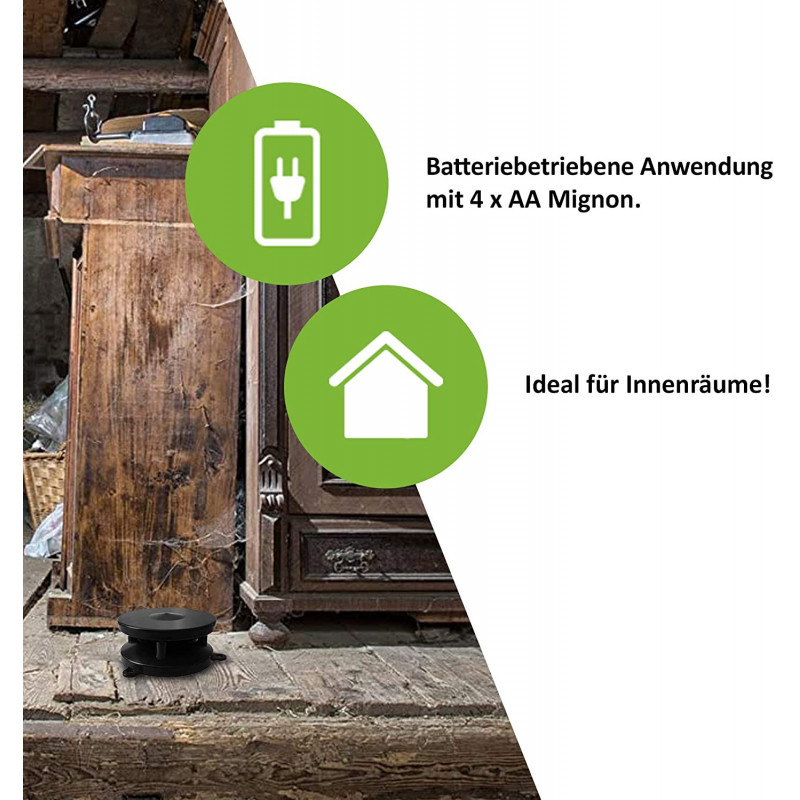 Dosah - možno poslať až 40 m² ultrazvukových vĺn. Striedavá frekvencia znižuje účinok návyku. Ideálne pre vozidlo, dom, garáž, stodolu, podkrovie alebo altánok
