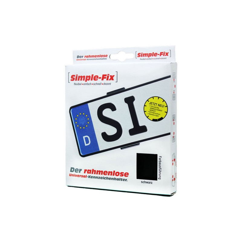 Nová univerzálna upevňovacia súprava Simple-Fix ponúka optimálnu možnosť jednoduchého upevnenia ŠPZ vpredu aj vzadu bez zbytočného vŕtania, no pritom je jednoduchá a bezrámová - takmer neviditeľná v priehľadnom prevedení, testované TÜV!