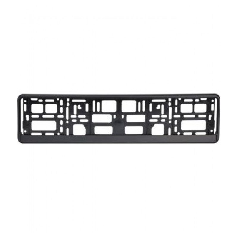 Plastová podložka pod tabuľku registračnej značky (RZ) alebo evidenčnej značky (ŠPZ) bežných rozmerov. Čierna lišta podčiarkuje celkový vzhľad rámčeka.