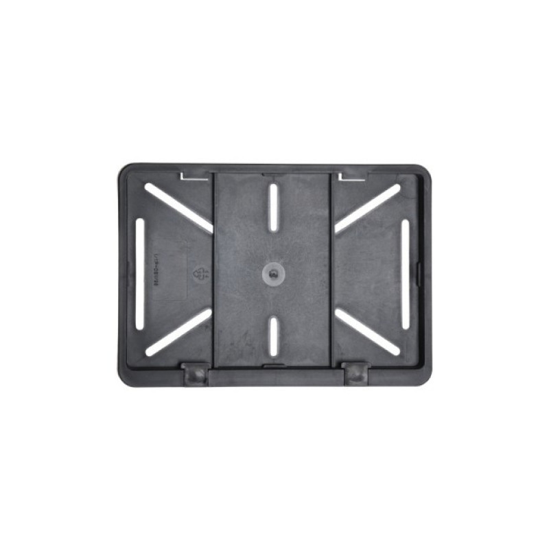Podložka s pružného ohybného plastu pod štátnu poznávaciu značku alebo tabuľku registračnej značky, otvory pre univerzálnu montáž.