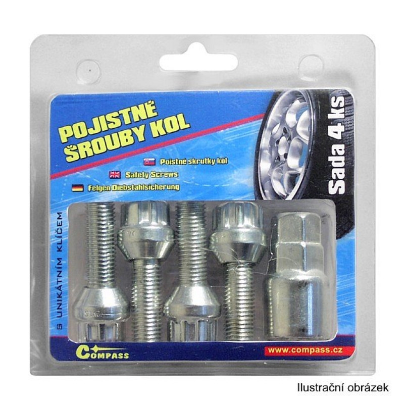 Poistné skrutky kolies ochraňujú kolesá pred demontážou bežným náradím. Sada 4 kusy + unikátny kľúč, montuje sa vždy len jeden poistný šrób na jedno koleso. Použiteľné pre zliatinové aj oceľové disky.