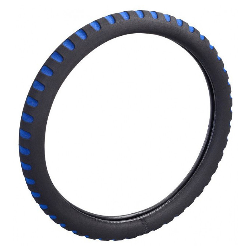 Penový poťah určený na nasadenie na volant o priemere 37-39cm. Príjemný do ruky. Farba čierna s modrými prelismi.