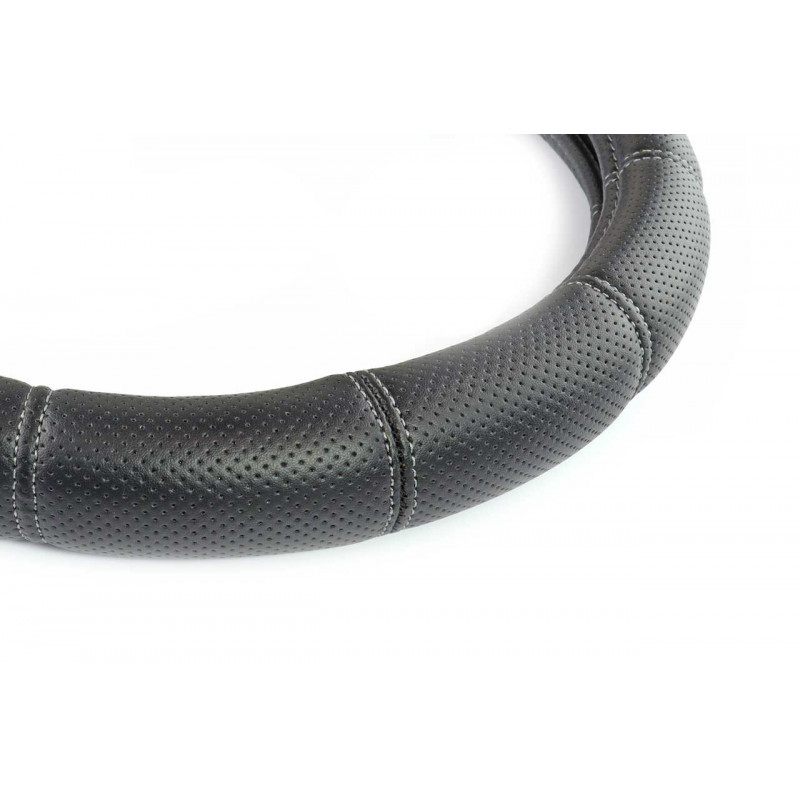 Poťah na volant pre univerzálne použitie na všetky typy volantov. Poťah na volant zlepšuje riadenie vozidla, zabraňuje šmýkaniu rúk po volante. Poťah volantu pri vysokých teplotách umožňuje príjemnejší kontakt rúk s volantom. Vďaka otvorenej vnútornej strane sa poťah jednoducho a rýchlo inštaluje, rozmer poťahu musí byť rovnaký ako priemer volantu. Poťahy sú na výber v rôznych rozmeroch a farebných kombináciách. Rozmer: 37 – 39 cm