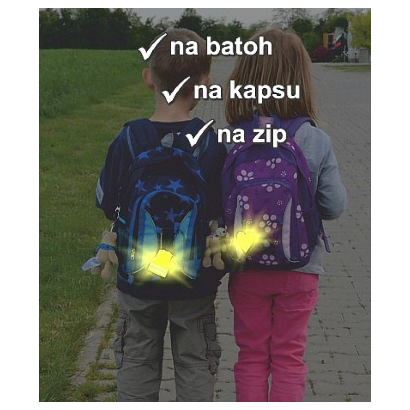 Moderný, zábavný a predovšetkým na veľkú vzdialenosť dobre viditeľný doplnok, vhodné aj pre deti. Najmä za zníženej viditeľnosti alebo v šere niekoľkonásobne predlžuje vzdialenosť, na ktorú vodič spozoruje chodca.