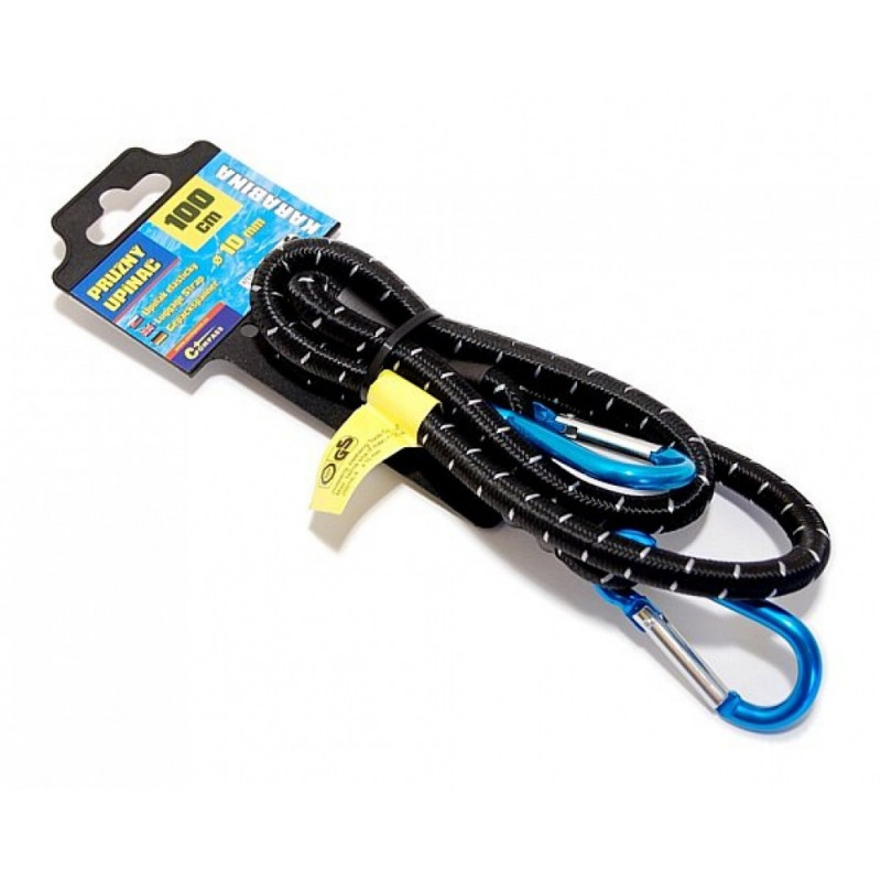 Pružný upínače vysokej kvality, zosilnený, homologizácia TÜV / GS. Zakončené karabínami pre dokonalé upevnenie. Dĺžka 100cm, priemer 10mm.
