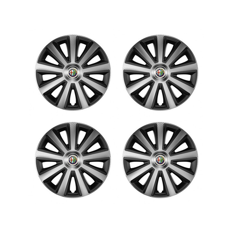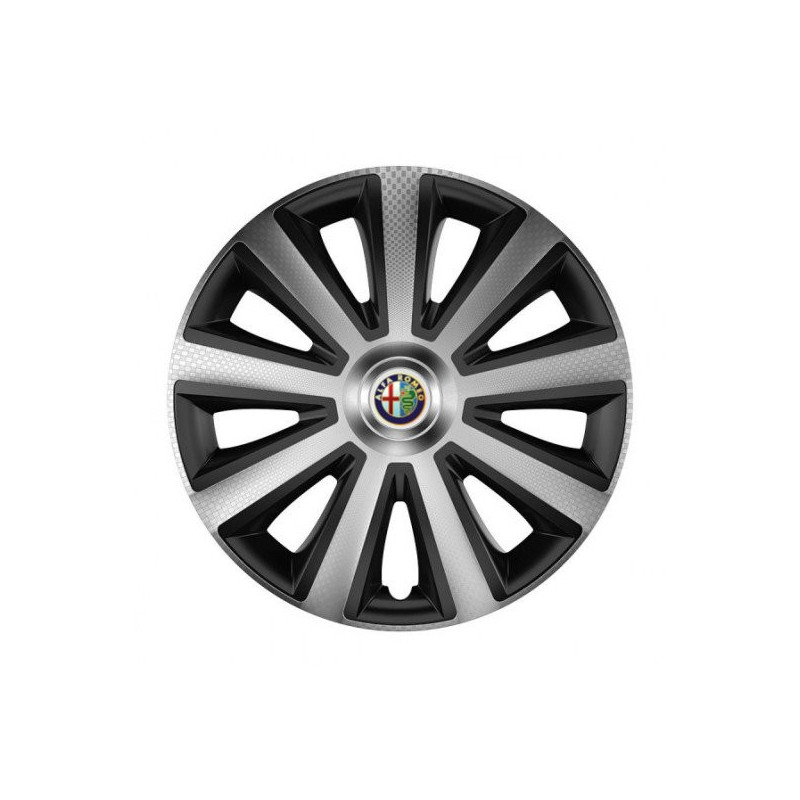 Puklice 14 Aviator carbon silver&black pre Alfa Romeo na ocelové disky. Pre kolesá o veľkosti R14 so živicovými samolepkami Alfa Romeo.Príjemca :