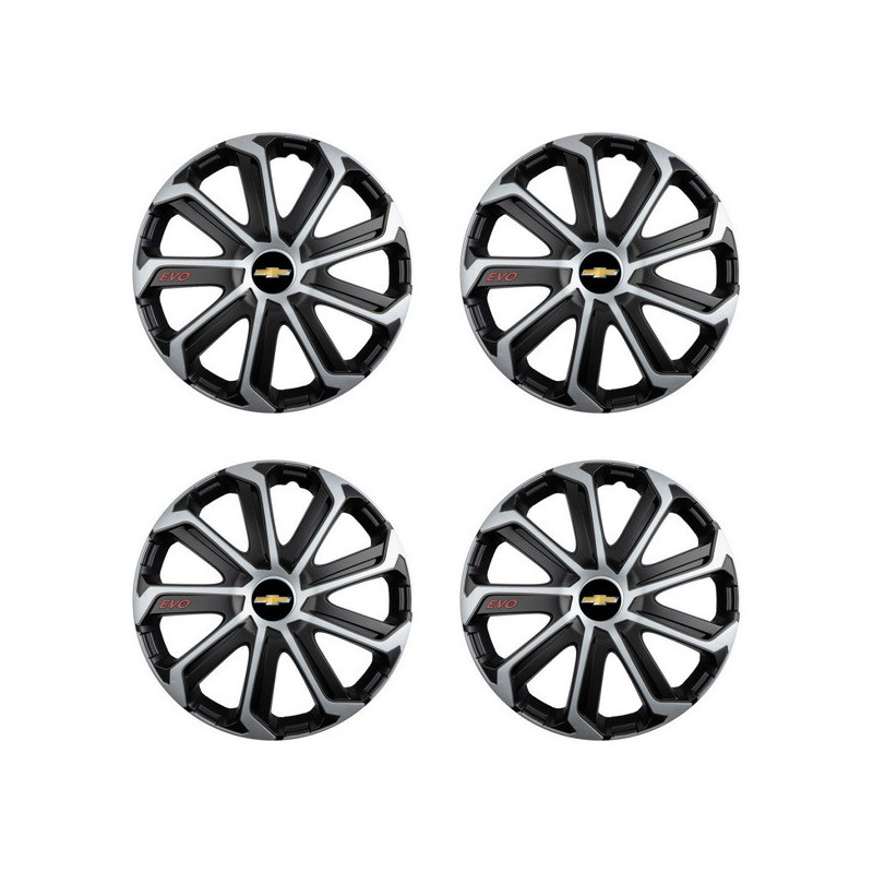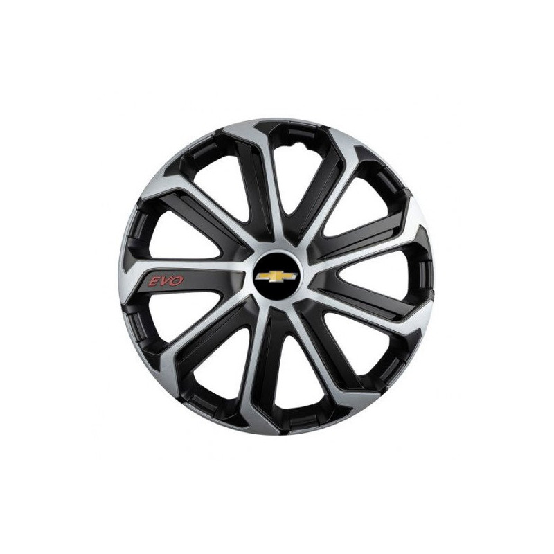 Puklice 16 Evo black&silver pre Chevrolet na ocelové disky. Pre kolesá o veľkosti R16 so živicovými samolepkami Chevrolet.Príjemca :