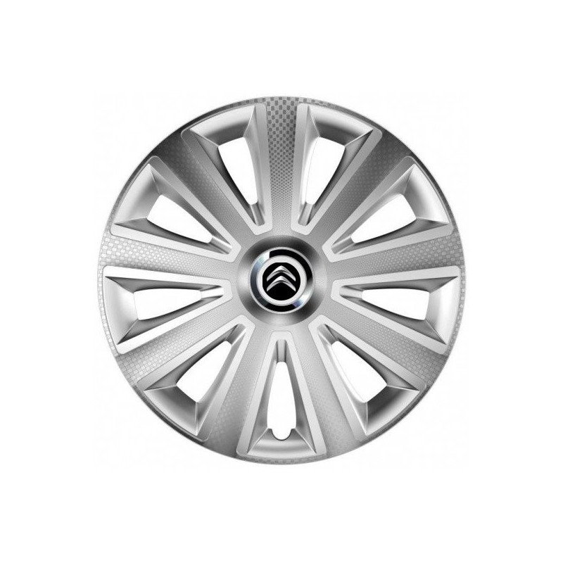 Puklice 14 Aviator carbon RC silver pre Citroen na ocelové disky. Pre kolesá o veľkosti R14 so živicovými samolepkami Citroen.Príjemca :