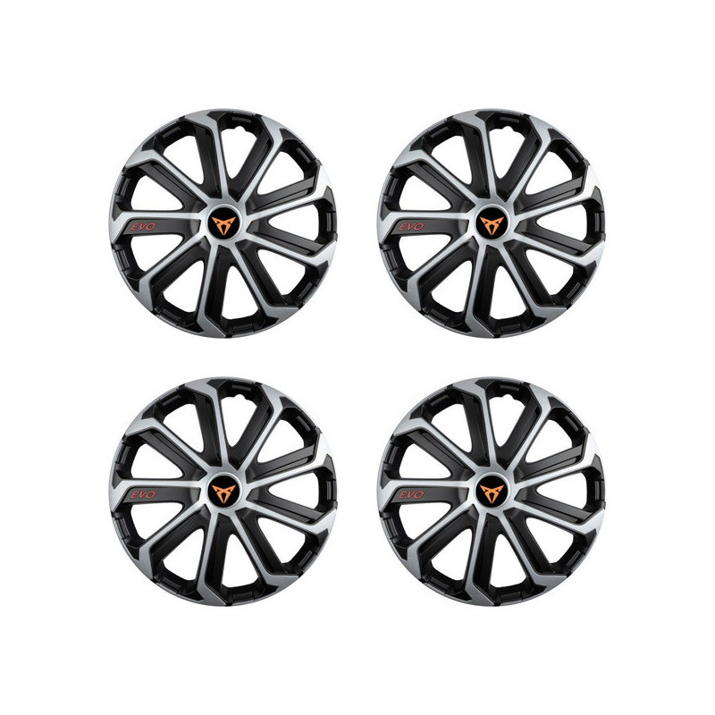 Puklice 16 Evo black&silver pre Cupra na ocelové disky. Pre kolesá o veľkosti R16 so živicovými samolepkami Cupra.Príjemca :