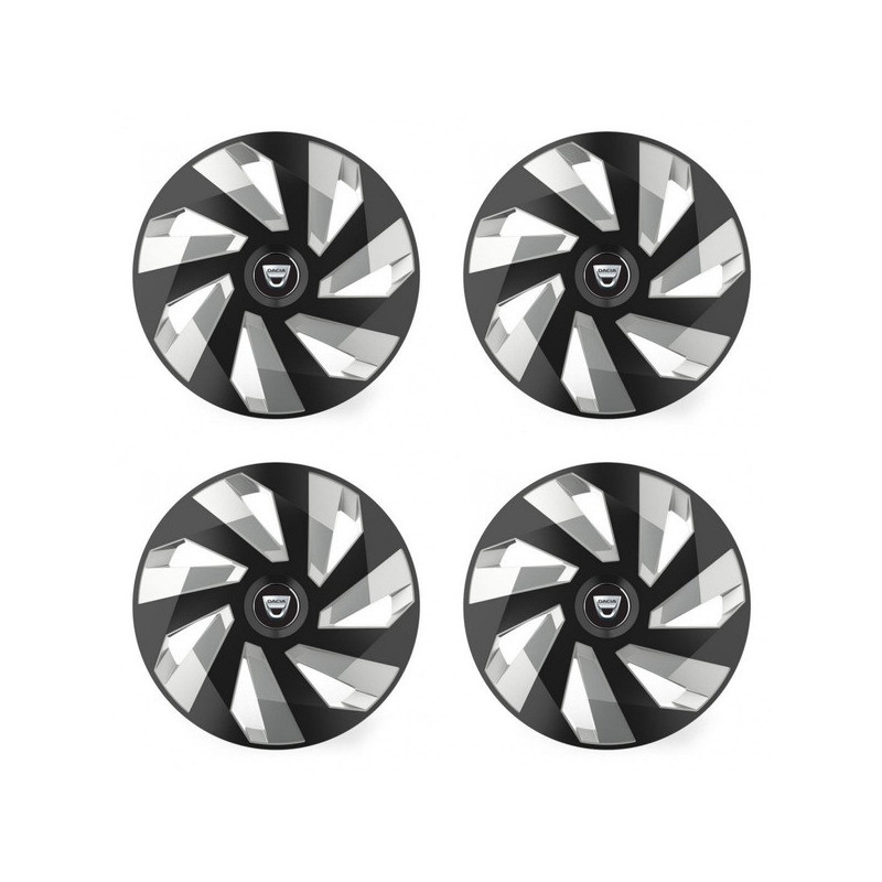 Puklice 14 Vector RC black and silver pre Dacia (staršie logo) na ocelové disky. Pre kolesá o veľkosti R14 so živicovými samolepkami Dacia (staršie logo).Príjemca :