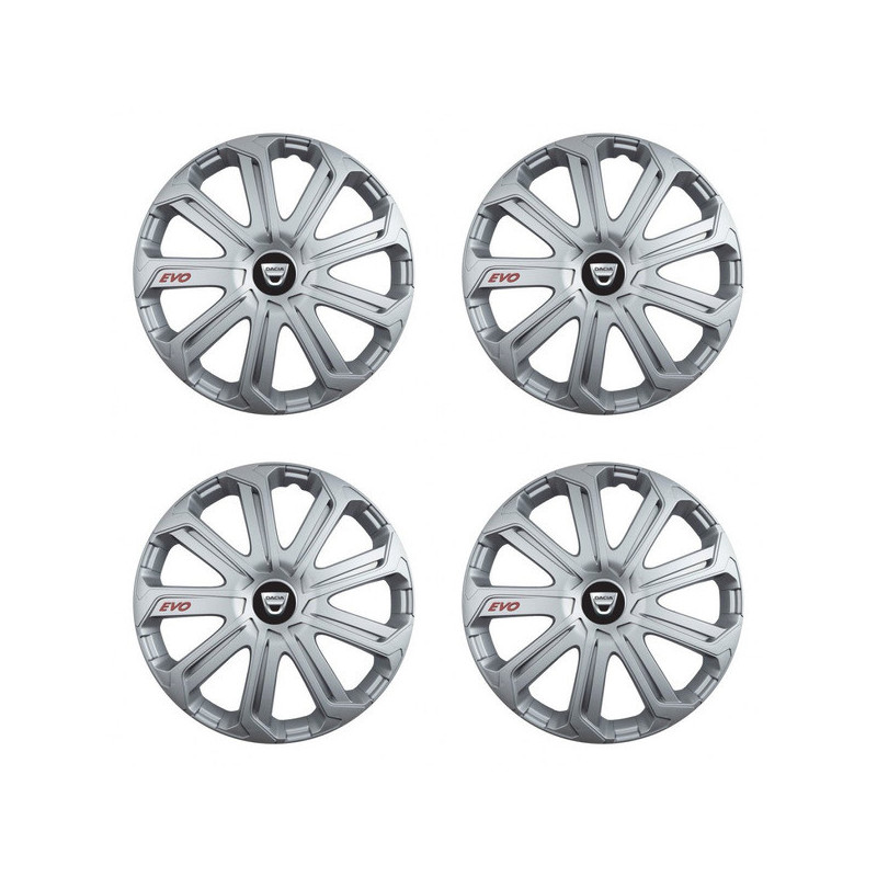 Puklice 15 Evo silver pre Dacia (staršie logo) na ocelové disky. Pre kolesá o veľkosti R15 so živicovými samolepkami Dacia (staršie logo).Príjemca :